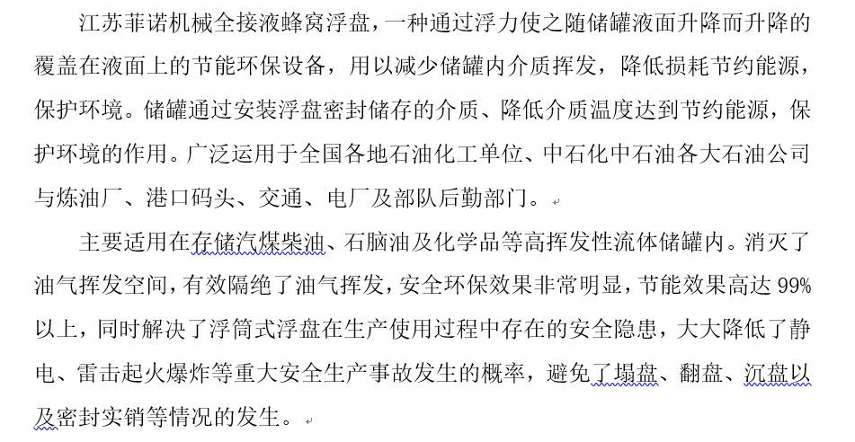 全接液蜂窩浮盤 日期:2021-08-31 / 人氣:4041 上一篇:已經(jīng)沒有了下一篇→蜂窩內(nèi)浮盤 聯(lián)系我們 Contact US 中國江蘇連云港海州區(qū)洪門工業(yè)園華陽路西首 0518―85266899 17851220999 13338983555 17851220999@163.com 產(chǎn)品中心 Products 陸用流體裝卸臂(鶴管) LNG超低溫鶴管 鶴管 全接液浮盤 不銹鋼內(nèi)浮盤 不銹鋼內(nèi)浮頂 內(nèi)浮盤(浮盤) 緊急拉斷閥 旋轉(zhuǎn)接頭(萬向節(jié)) 干式閥(API接頭) 彈簧缸平衡系統(tǒng) 快速接頭 定量裝車控制系統(tǒng) 鋼結(jié)構(gòu)裝卸平臺(棧橋) 活動梯 船用裝卸臂 網(wǎng)殼 油罐附件 鶴管附件